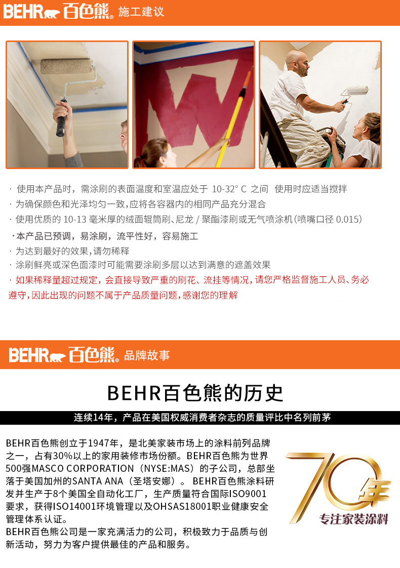 百色熊(Behr)A02高效多功能封闭底漆 美国原罐原装进口乳胶漆环保水性涂料1加仑
